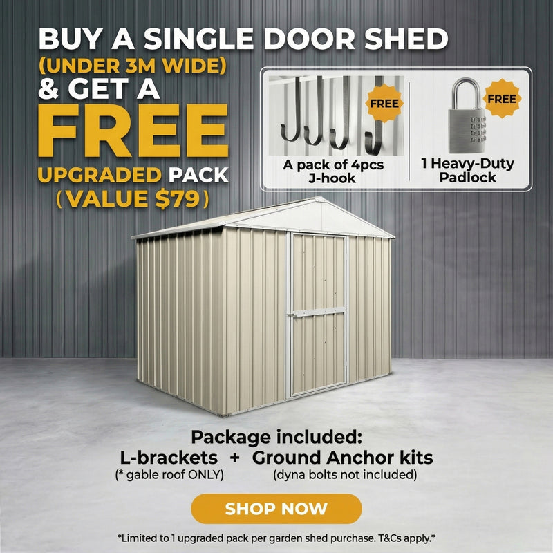 Browse the complete sheds collection from Space Sheds and find the ideal garden shed, workshop, or storage solution for your Australian backyard. We offer a huge variety of designs made from durable Colorbond steel and other premium materials, perfect for everything from small tool storage to large farm sheds or home workshops. Our sheds are designed with Australian lifestyles in mind, providing secure, weather-resistant spaces that add real function and appeal to any property, big or small.