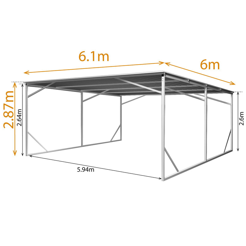 Carport 6m x 6m Vehicle Shelter Skillion Steel Double Carport plus 80X40MM Tube