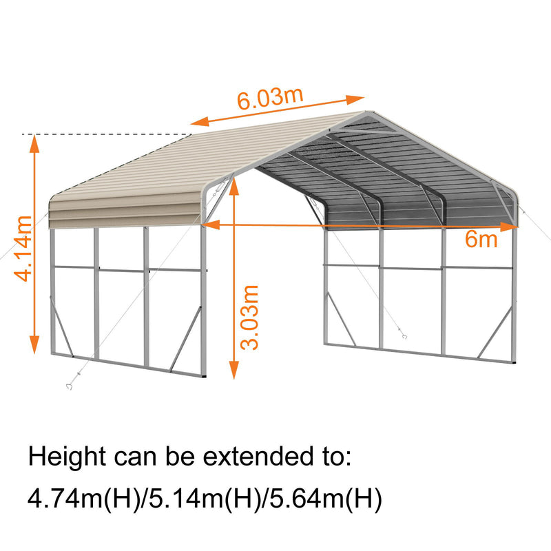 Double Carport 6m x 6.03m x 4.14m Backyard Portable Vehicle & Boat Shelter with Wrapped Roof