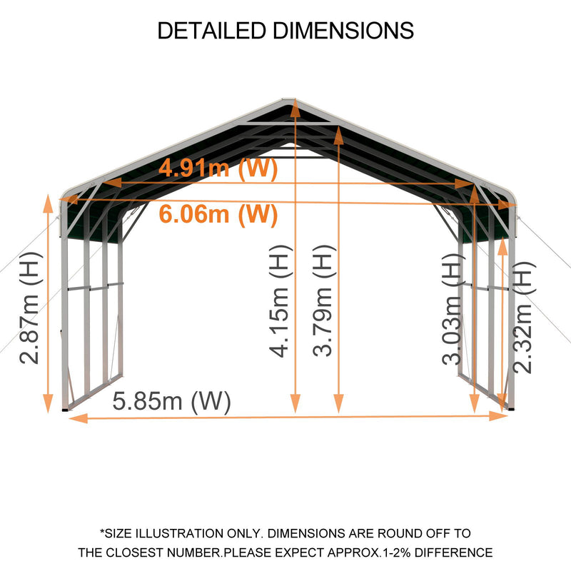 Home / Carports / Double Carport 6m x 6.03m x 4.14m Backyard Portable Vehicle & Boat Shelter with Wrapped Roof
