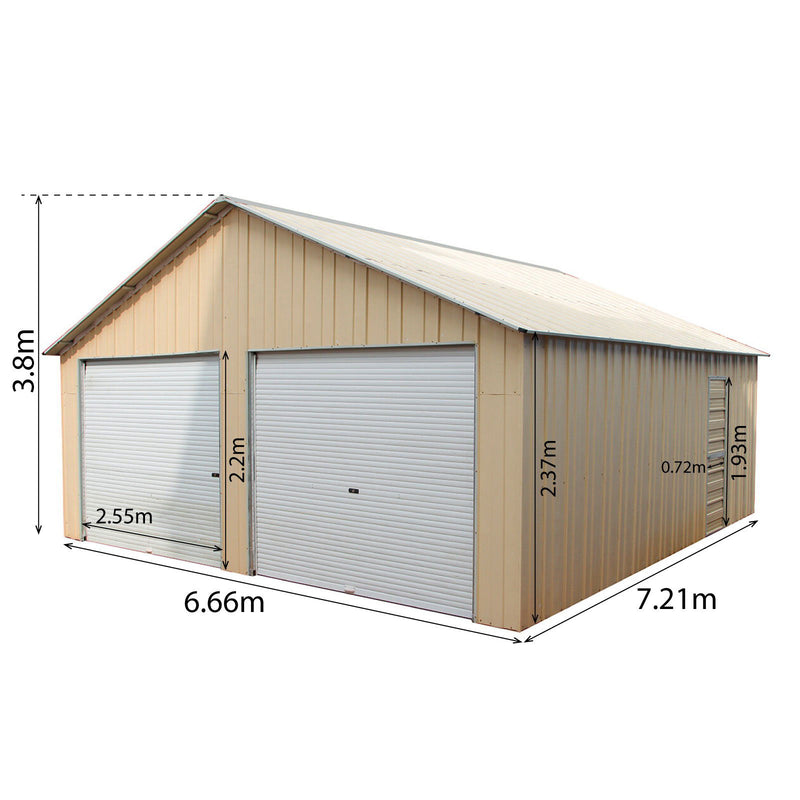 Double Garage 6.6m x 7.2m x 3.7m Widespan Roller Door Workshop