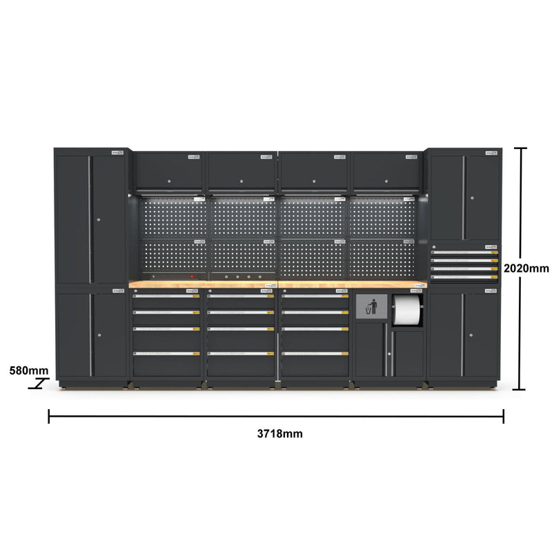 UltraTools 3718mm x 580mm x 2020mm Black Semi-Industrial Workshop Garage Storage System