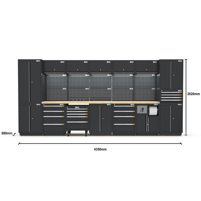 UltraTools 4350mm x 580mm x 2020mm Black Semi-Industrial Workshop Garage Storage Cabinet Set