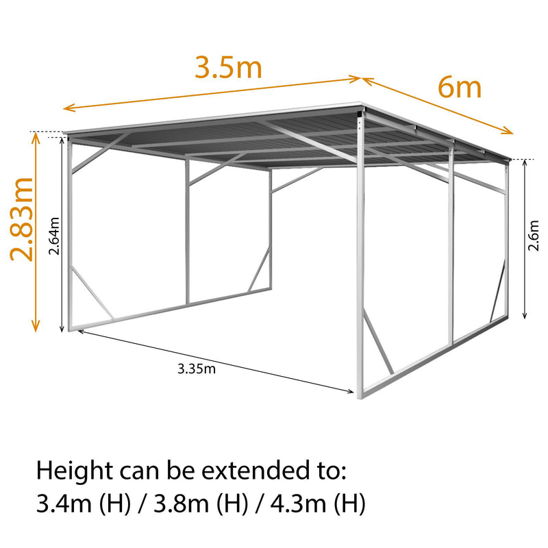 Vehicle Shelter 3.5m x 6m x 2.8m Steel Carport